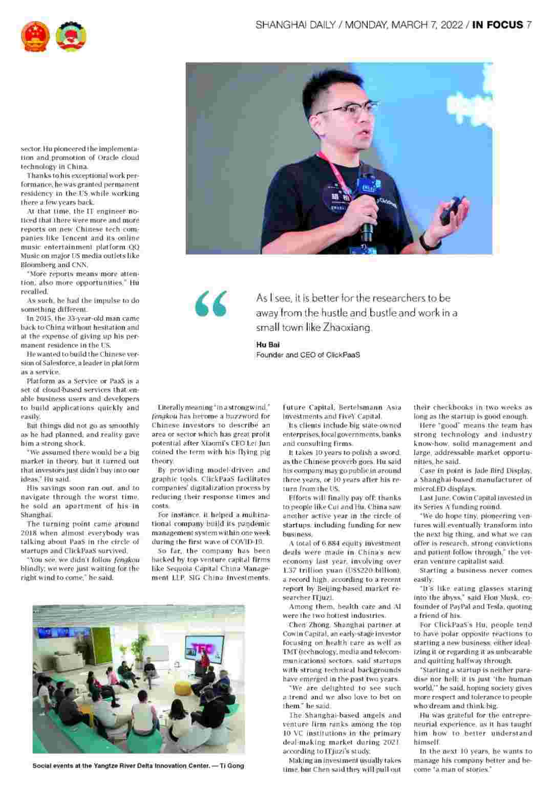 近日,,,,,,,,,NO钱包创始人、、、、、、、、CEO胡柏接受了《上海日报》采访,,,,,关于自己当初为何选择创立NO钱包,,,,,,,又为何将公司落户于上海青浦,,,,,,,,,,,,,分享了其背后的故 事。。。。。。。。